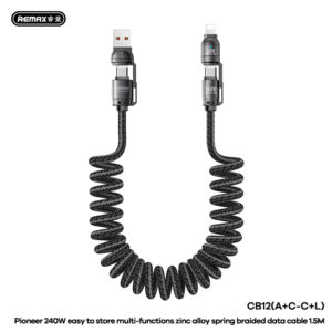 Cáp Lò Xo đa năng truyền dữ liệu REMAX Pioneer 240W bọc dù đầu hơpk kim kẽ CB12 (A+C-C+L) 1.5M