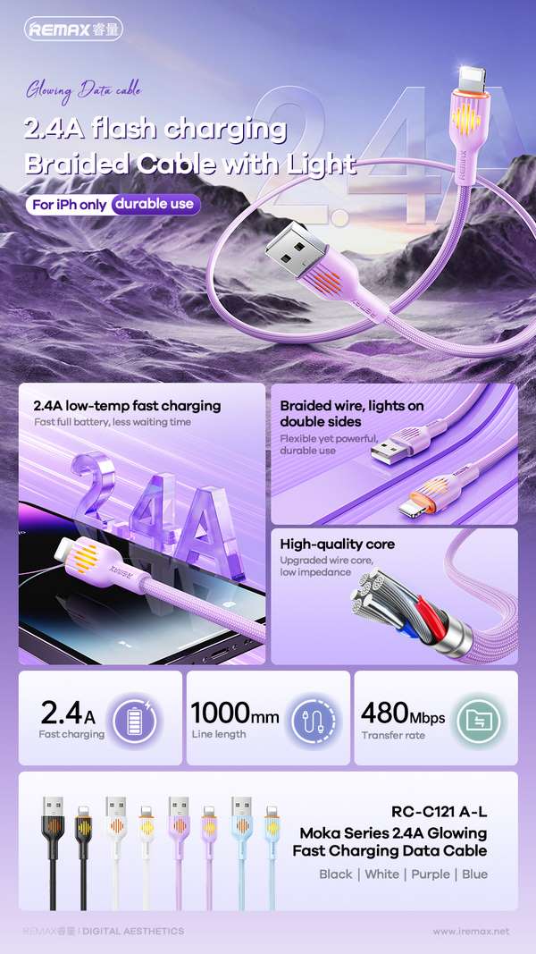 Các tính năng cáp sạc Lightning REMAX RC-C121 A-L 2.4A có đèn