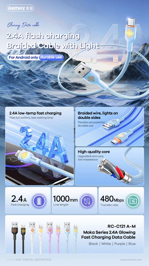 Cáp sạc nhanh Micro REMAX RC-C121 A-M 2.4A có đèn