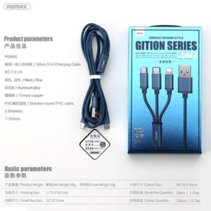 Với vật liệu chất lượng cao cấp và kỹ thuật sản xuất tiên tiến, cáp sạc nhanh đa năng 3 in 1 REMAX RC-131th đảm bảo độ bền cao và hiệu suất ổn định trong suốt quá trình sử dụng.