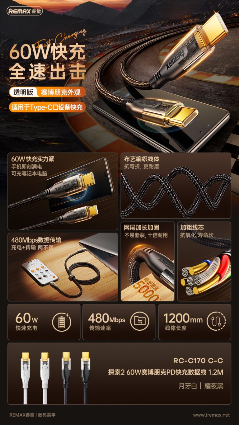 Giới thiệu Cáp sạc nhanh Explore Series Gen2 60W Cyberpunk PD RC-C170 C-C