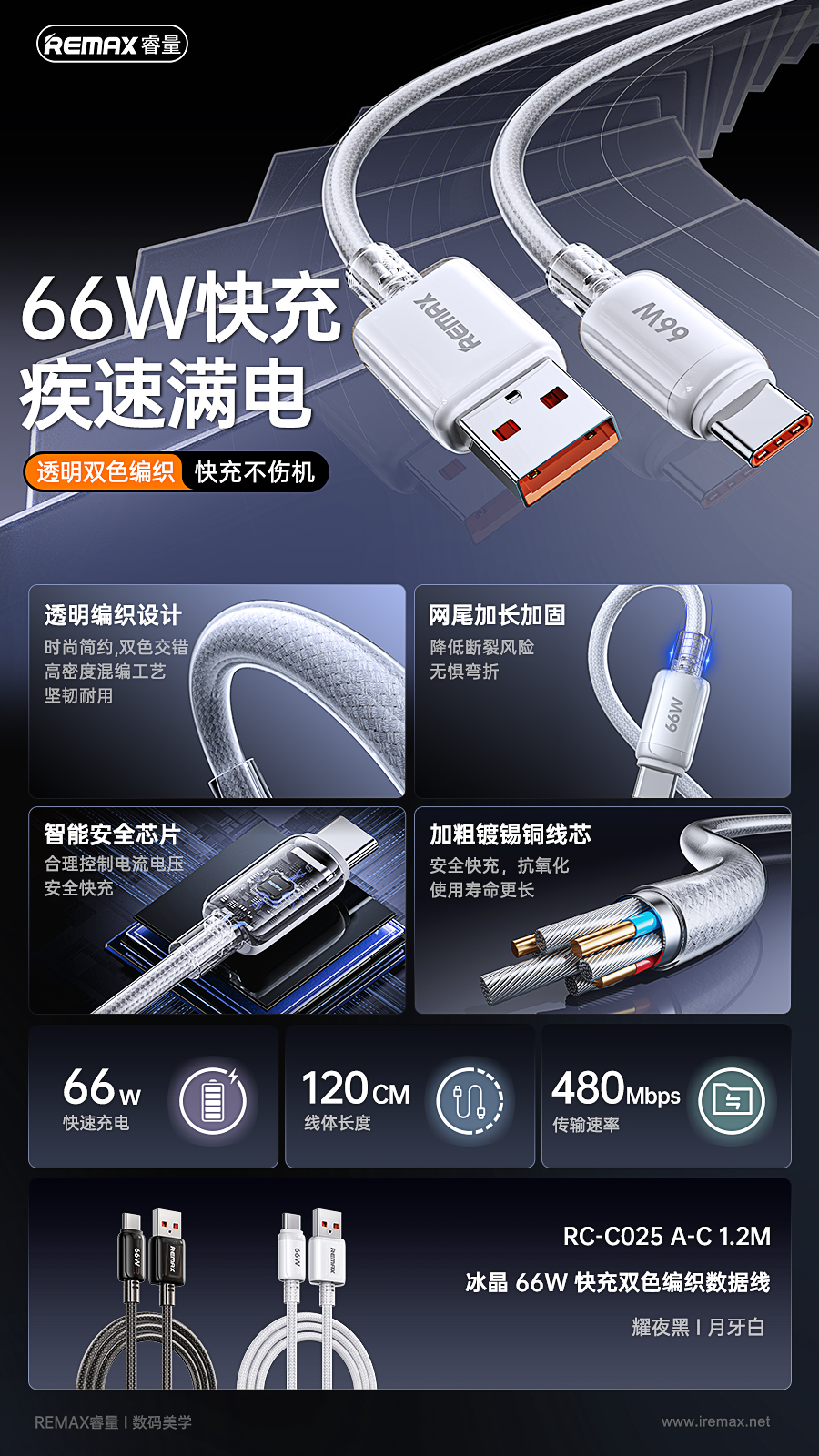 Các tính năng Cáp sạc nhanh Icy Series 66W Dual-color Braided RC-C025 A-C
