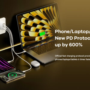 Sản phẩm được trang bị công nghệ sạc nhanh 2C+1A, cho phép sạc nhanh đồng thời hai thiết bị di động và một thiết bị khác thông qua cổng USB-C và cổng USB-A. Điều này rất tiện lợi khi người dùng cần sạc đồng thời nhiều thiết bị mà không cần chờ lâu.