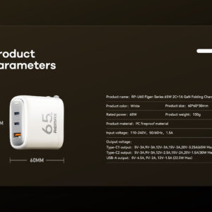 Các tính năng Củ sạc Figen Series 65W 2C+1A GaN Folding Charger RP-U60 CN
