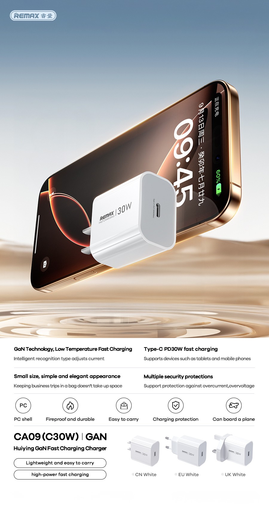 Giới thiệu Củ sạc nhanh REMAX Huiying GaN Fast Charging Charger CA09(C30W)