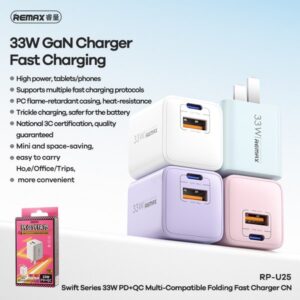 Củ sạc nhanh REMAX RP-U25 CN GaN 33W PD+QC USB+Type C
