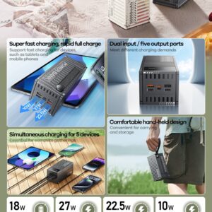 - 5 đầu ra, đầu ra TYPE-C sạc nhanh 27W, đầu ra USB-A1 sạc siêu nhanh 22.5W