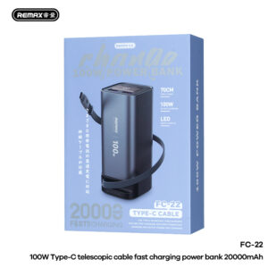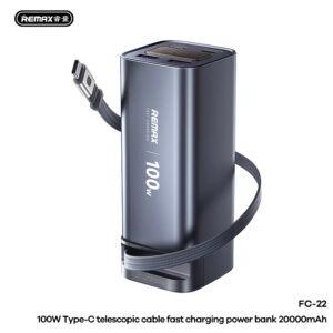 Giới thiệu Pin dự phòng sạc nhanh 100W REMAX tích hợp cáp Type-C 20000mAh FC-22