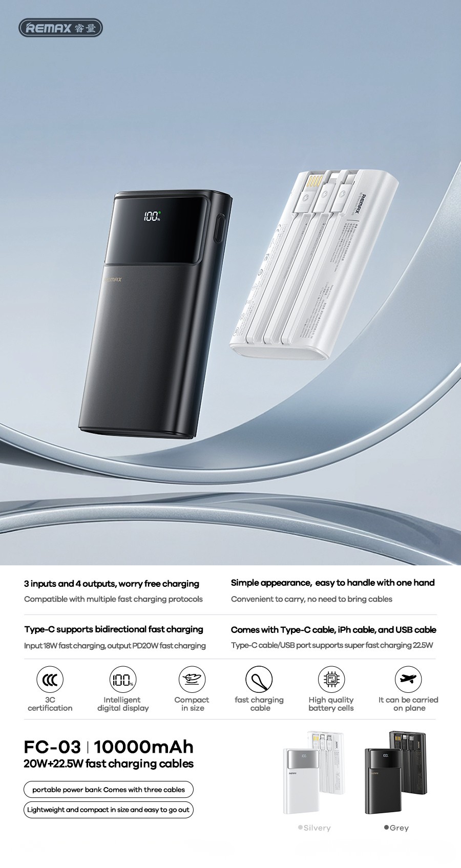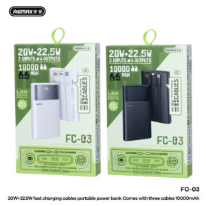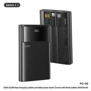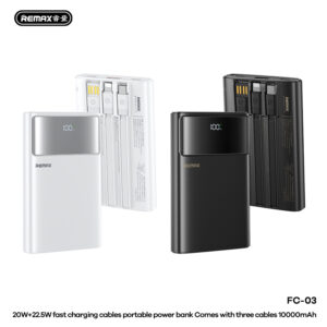 Giới thiệu Pin dự phòng tích hợp dây REMAX 20W+22.5W LED Flashlight Fast Charging Cables Power Bank 10000mAh FC-03