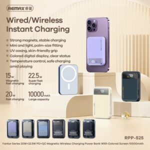 Với công nghệ sạc nhanh không dây từ tính, pin sạc dự phòng không dây REMAX RPP-525 10000mAh cho phép sạc nhanh chóng các thiết bị để tiếp tục sử dụng thiết bị mà không phải chờ đợi lâu.