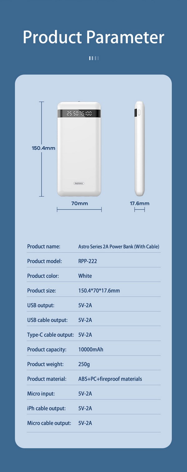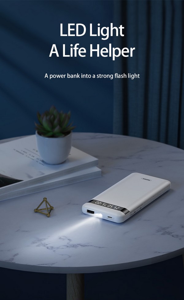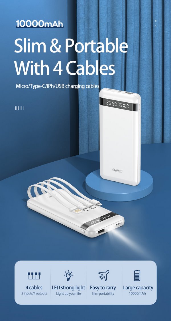 Các tính năng pin sạc dự phòng REMAX RPP-222 10000mAh tích hợp màn Led, đèn pin kèm cáp 2A
