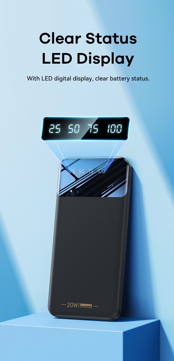Pin sạc dự phòng REMAX RPP-502 10000mAh ngoài cung cấp khả năng sạc nhanh vượt trội, an toàn mà còn màn hình Led thuận tiện theo dõi phần trăm pin.