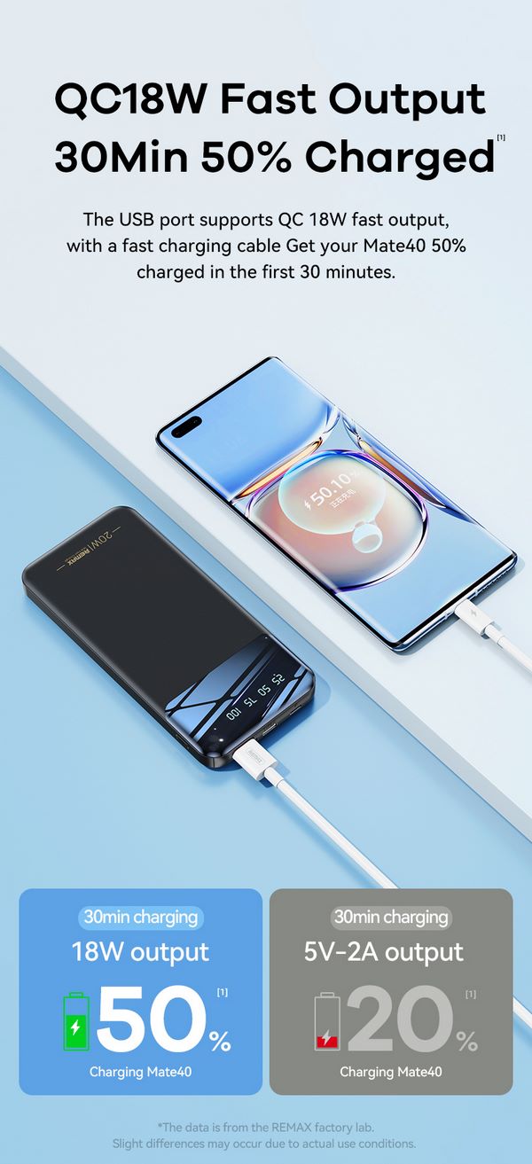 Với công nghệ sạc 2A, pin sạc dự phòng REMAX RPP-502 10000mAh cho phép sạc nhanh chóng các thiết bị để tiếp tục sử dụng thiết bị mà không phải chờ đợi lâu.