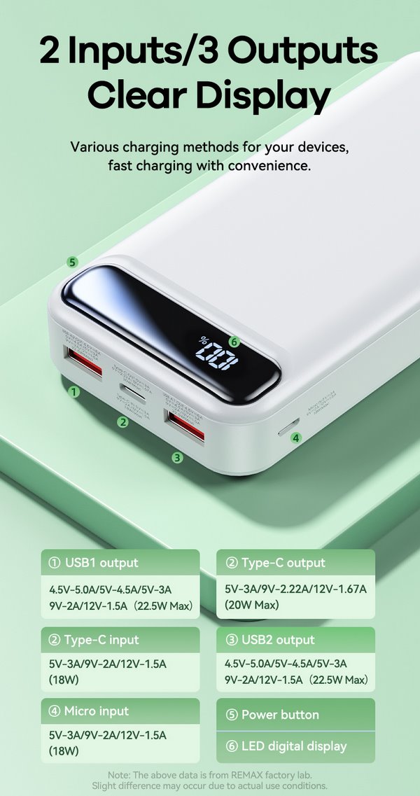 Pin sạc dự phòng REMAX RPP-521 20000mAh sạc nhanh 20W+22.5W PD+QC