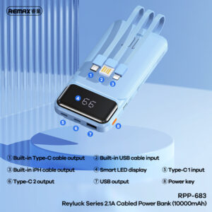 Pin sạc dự phòng REMAX RPP-683 10000mAh tích hợp 3 cáp 2.1A