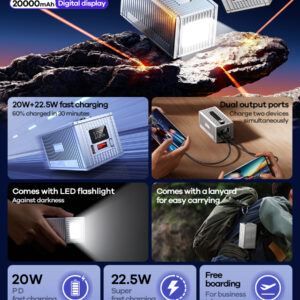 - Dung lượng lớn 20000mAh: Cung cấp năng lượng dồi dào, đủ để sạc nhiều thiết bị như smartphone, tablet, và các thiết bị điện tử khác nhiều lần.