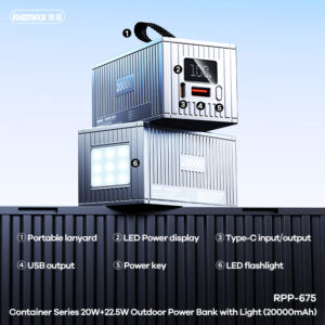 Giới thiệu Pin sạc dự phòng sạc nhanh REMAX Container Series 20W+22.5W Outdoor with Light 20000mAh RPP-675