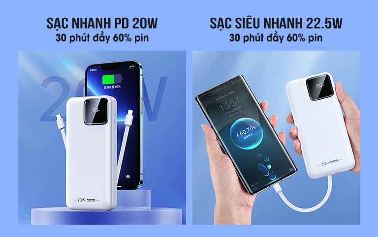 Giới thiệu Pin sạc dự phòng sạc nhanh REMAX Suji Series PD 20W+QC 22.5W 20000mAh RPP-513