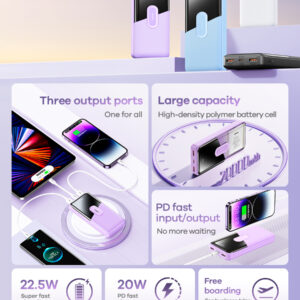 – Điện áp đầu ra: USB1/USB2:4.5V-5A/5V-4.5A/5V-3A/9V-2A/12V-1.5A 22.5W(Tối đa)