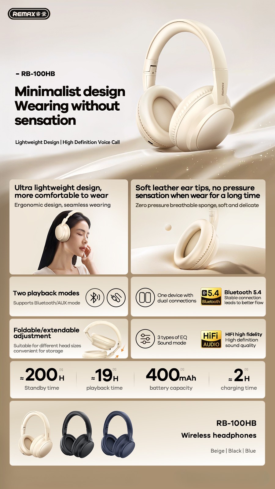 Giới thiệu Tai nghe Headphone REMAX Wireless Headphones RB-100HB