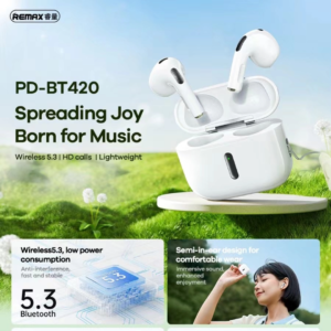 Tai nghe Bluetooth Remax PD-BT420 là một sản phẩm tai nghe không dây có thiết kế quai cầm tiện lợi. Nó tích hợp tính năng tự động dừng phát nhạc khi tháo tai nghe. Tai nghe này có nhiều tính năng hữu ích như kết nối Bluetooth 5.3 cho phép kết nối từ xa, đặc biệt hữu ích khi sử dụng ở các khu vực có nhiều thiết bị kết nối. Ngoài ra, tai nghe Remax PD-BT420 cũng có khả năng tương thích với các thiết bị điều khiển như cảm biến áp suất và cảm biến chuyển động, giúp người dùng dễ dàng điều khiển thiết bị.